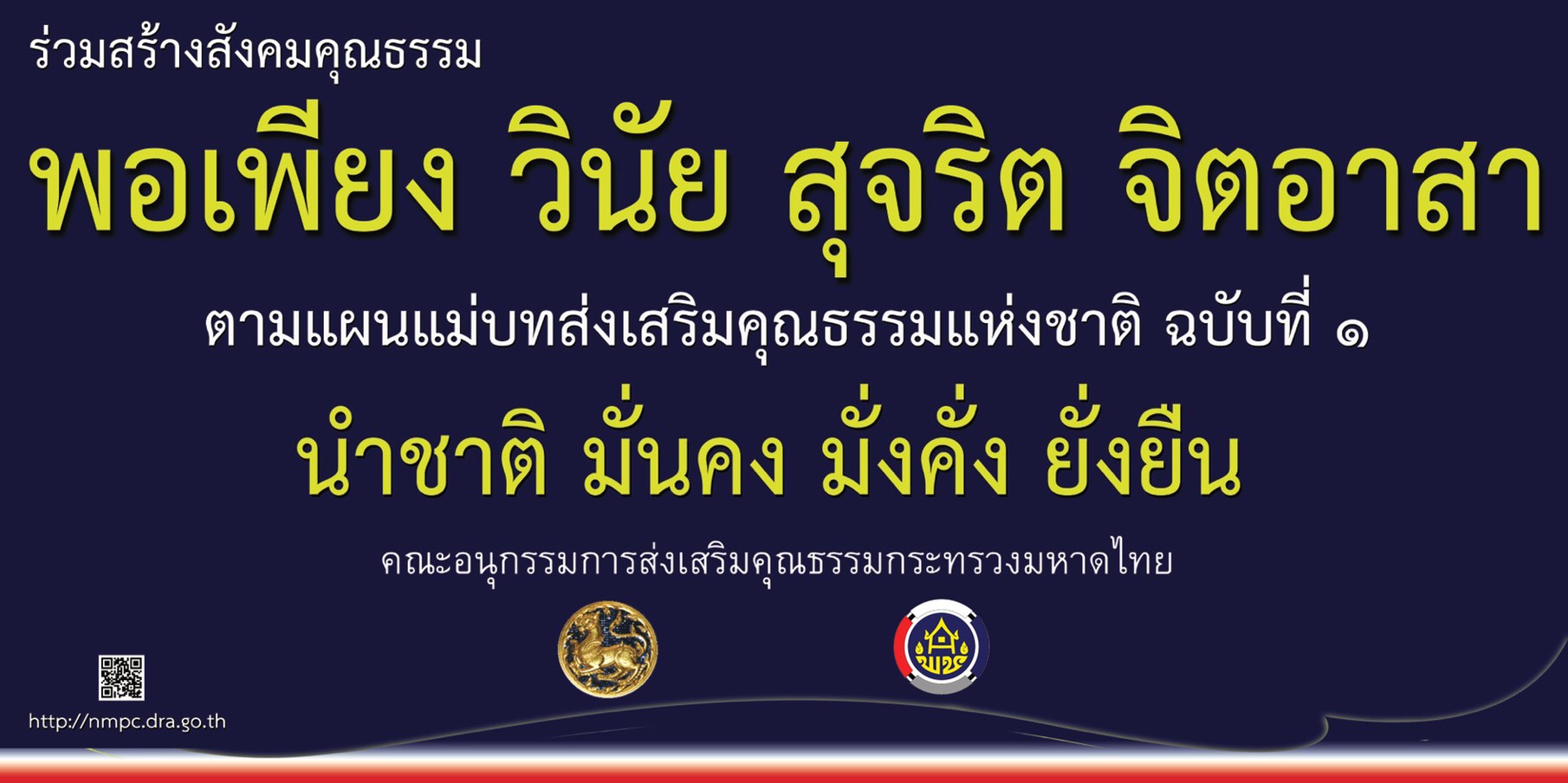 ด้วยกรมการพัฒนาชุมชนได้รับแจ้งจากกระทรวงมหาดไทยให้ดำเนินการประชาสัมพันธ์คุณธรรมหลัก ๔ ประการ พอเพียง วินัย สุจริต จิตอาสา ตามนโยบายส่งเสริมให้คน-องค์กร-ชุมชน-และหน่วยงานมีคุณธรรม ปฏิบัติตนตามหลักธรรมคำสอนทางศาสนา น้อมนำหลักปรัชญาของเศรษฐกิจพอเพียง มาเป็นหลักในการพัฒนาคุณภาพชีวิตและดำรงชีวิตตามวิถีวัฒนธรรมไทยที่ดีงาม ตามแผนแม่บทส่งเสริมคุณธรรมแห่งชาติ ฉบับที่ ๑ (พ.ศ. ๒๕๕๙ – ๒๕๖๔) ด้วยการจัดทำป้ายประชาสัมพันธ์หรือผ่านสื่อต่าง ๆ