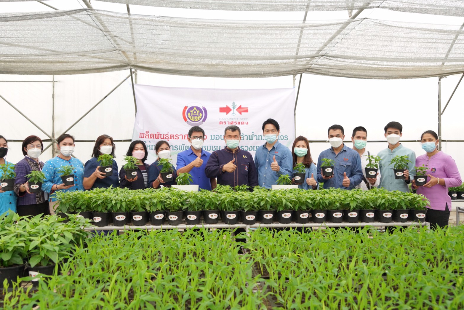 สุดท้ายนี้ กรมการพัฒนาชุมชน กระทรวงมหาดไทย จะเป็นตัวแทนส่งมอบต้นกล้าฟ้าทะลายโจรจำนวน 4,000 ต้น ให้พี่น้องคนไทยทั่วประเทศ และส่งเสริมการขยายพันธุ์ และส่งเสริมอนุรักษ์พันธุกรรมพืชต่อไป จะเห็นได้ว่าประเทศชาติจะอยู่รอดได้ ถ้าทุกคนไม่ทอดทิ้งกัน อย่างเช่นบริษัท อีสท์ เวสท์ ซีด จํากัด (เมล็ดพันธุ์ตราศรแดง) และเราจะเป็นภาคีเครือข่ายที่ดี เพื่อช่วยเหลือพี่น้องประชาชนให้รอดพ้นจากวิกฤตในครั้งนี้ได้อย่างแน่นอน ทำให้สังคมเป็นสังคมแห่งความรัก ความสามัคคี เอื้อเฟื้อเผื่อแผ่ ซึ่งพืชผักที่ปลูกจะสามารถช่วยบรรเทาความเดือดร้อน อย่างน้อยช่วยลดค่าใช้จ่ายในครัวเรือน มีผักกินเองในบ้านโดยที่ไม่ต้องซื้อหาจากข้างนอก ปลูกผักที่กิน กินผักที่ปลูก ประหยัดรายจ่าย เท่ากับเพิ่มรายได้ ทำให้เศรษฐกิจฐานรากของประเทศเกิดความมั่นคง มีความเข้มแข็ง อย่างยั่งยืนต่อไป และขอเชิญชวนทุกท่านร่วมสมัครเป็นสมาชิก Fanpage Facebook “ปลูกพืช ปลูกผัก ปลูกรักกับ พช” ด้วยการกด Like กด Share เพื่อเป็นช่องทางให้เกิดการแลกเปลี่ยนเรียนรู้ สร้างแรงบันดาลใจร่วมกัน พร้อมเป็นการสร้างวัฒนธรรมการพึ่งพาตนเอง ด้วยการปลูกพืชผักสวนครัวและพืชสมุนไพรไว้บริโภคเองในครัวเรือน จนเป็นอุปนิสัยเพื่อสร้างความมั่นคงทางอาหาร เป็นต้นแบบให้กับพี่น้องประชาชนทั่วโลกได้ชื่นชมต่อไป อธิบดี พช. กล่าวปิดท้าย