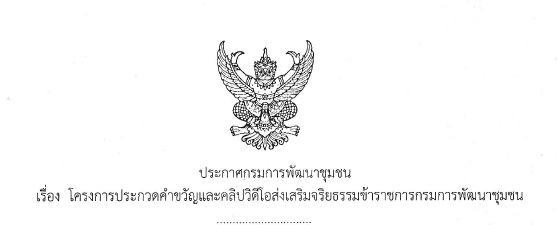 โครงการประกวดคำขวัญและคลิปวิดีโอส่งเสริมจริยธรรมข้าราชการกรมการพัฒนาชุมชน
