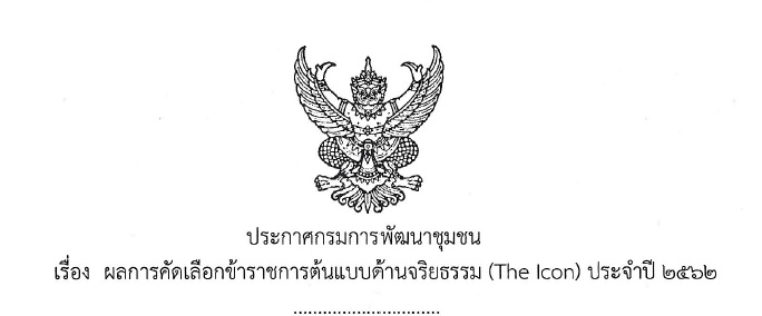 ประกาศผลการคัดเลือกข้าราชการต้นแบบด้านจริยธรรม (The Icon) ประจำปี 2562