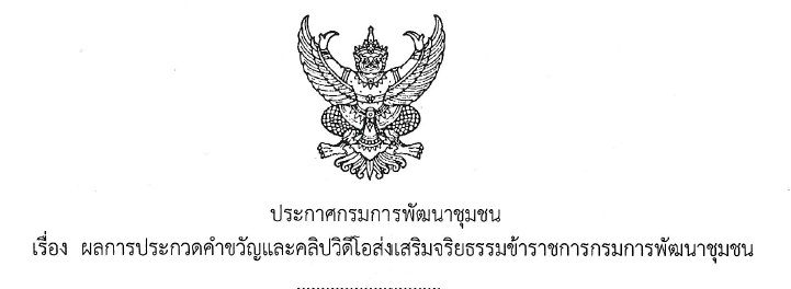 ประกาศผลคำขวัญและคลิปวิดีโอส่งเสริมจริยธรรมข้าราชการกรมการพัฒนาชุมชน
